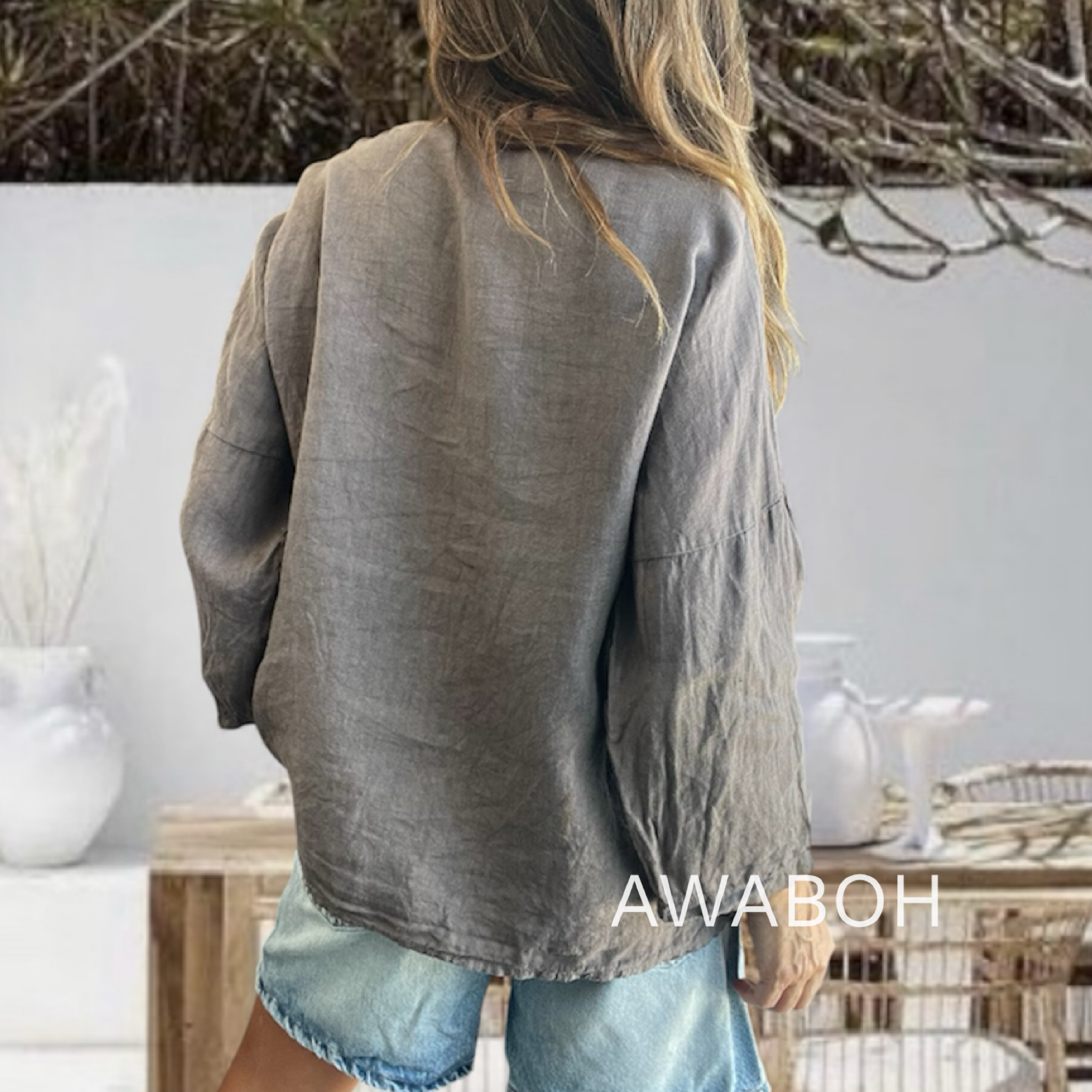 Blusa Lino Malú Taupe
